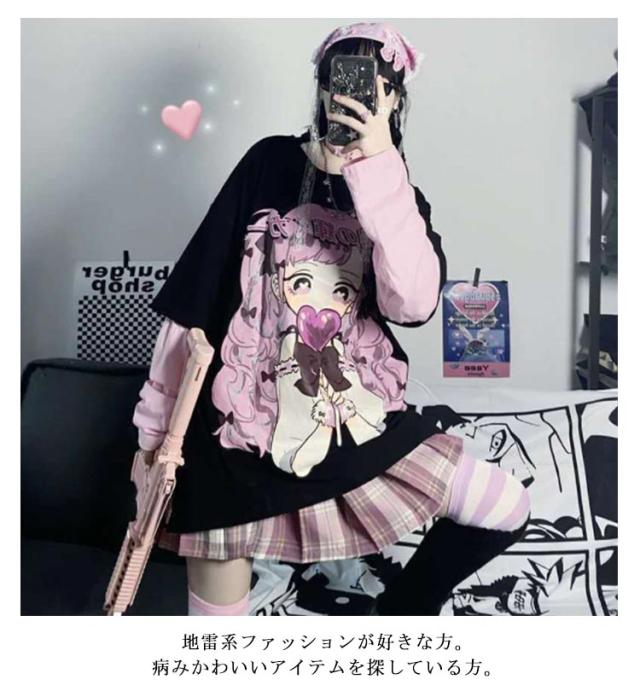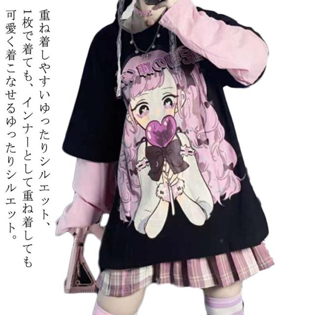 レディース 普段着 カットソー ロンT長袖 tシャツ プリント トップス ロゴ tシャツ 地雷系 原宿系 着痩せ 病みかわいい ロンT ビッグシルエット 丸首 カジュアル 量産型 可愛い シンプル レイヤード 春 夏 秋