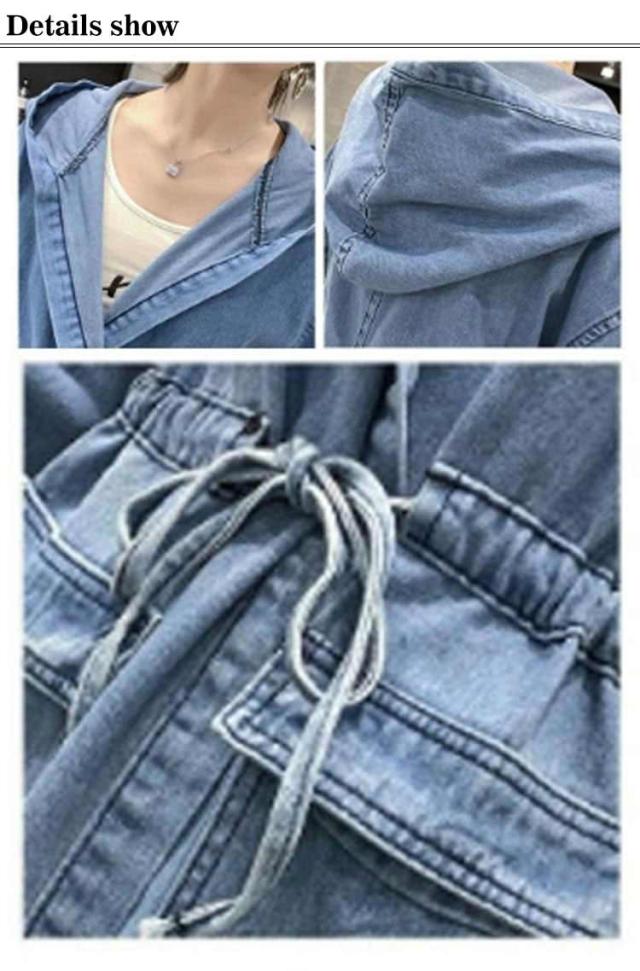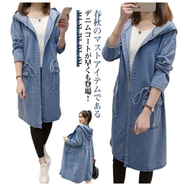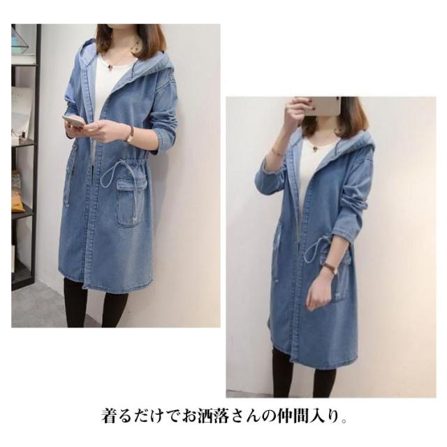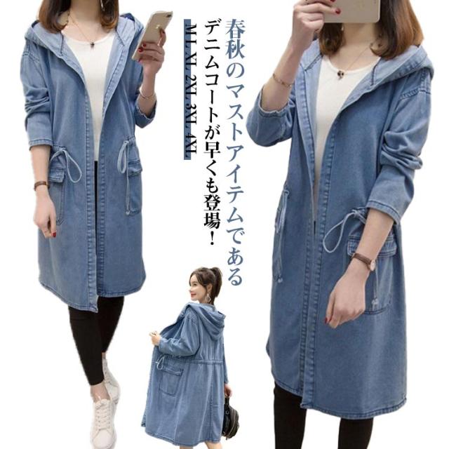 デニムコート 春 ロングコート フード付き カーディガン トレンチコート デニムワンピース デニムコート キレイめ レディース きれいめ 長袖 ロングワンピース アウター 秋 羽織り アウター 体型カバー オシャレ 大人 着痩せ 30代 50代