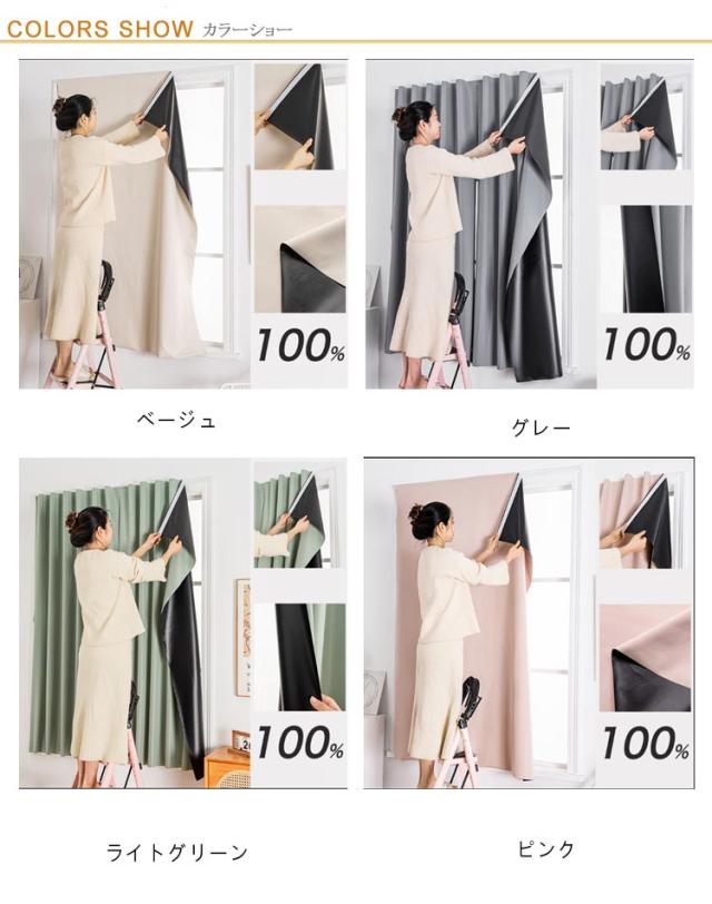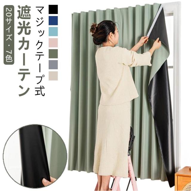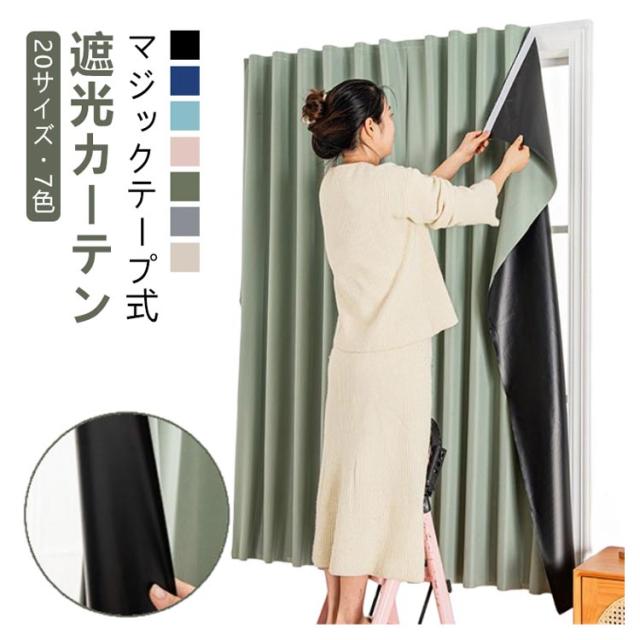| 【遮光カーテン】【マジックテープ式】【20サイズ・7色】 一人でも簡単装着できるマジックテープ式遮光カーテン。 マジック両面テープが付いて、窓枠や壁に貼り付けるだけでの簡単装着。 木製、金属、ガラス、セラミックタイルなど様々なところに簡単に貼り付けられるから、脱衣所、窓、靴箱、玄関に、お部屋のちょっとした間仕切りや目隠しにもピッタリ。 強い日差しを遮断し、日光や街灯の光をしっかり遮断します。熱の損失と取得が減少し、省エネにも繋がります。 室外陽光阻まれて、たとえ猛暑が続くても、薄暗く涼しい雰囲気を持っています。uvカット加工でフローリングや家具の日焼け防止もおすすめです。 見た目もオシャレ、インテリアに合わせやすい豊富な7カラー展開。 | |