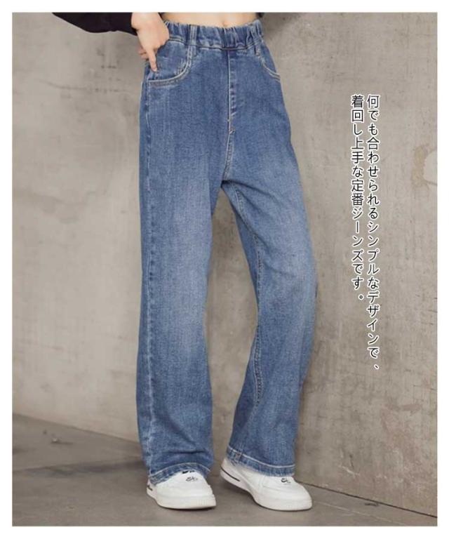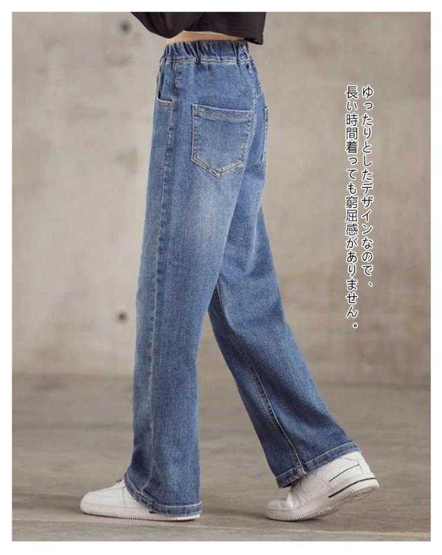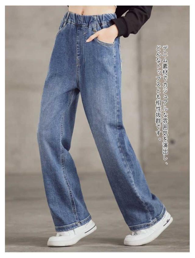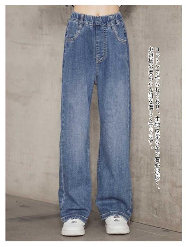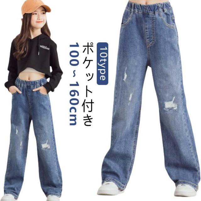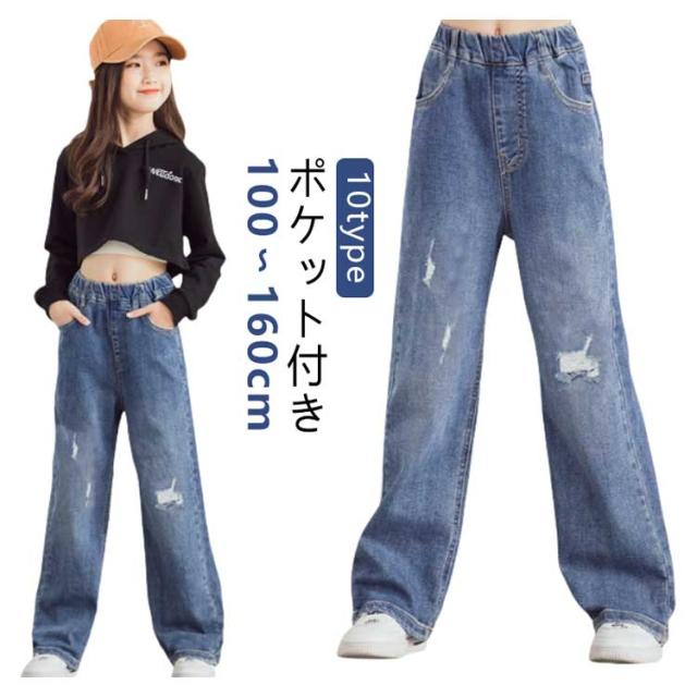 ワイドパンツ 通学 衣装 ダンス 子供服 ウエストゴム 長ズボン ジーパン キッズ デニムパンツ ジーンズ 小学生 女の子 ボトムス ダメージ 中学生 デニムパンツ おしゃれ ロングパンツ ジュニア 100 110 120 130 140 150 160cm ガールズ カジュアル