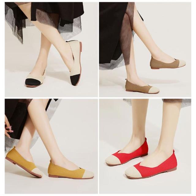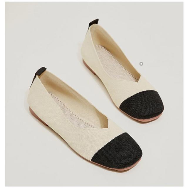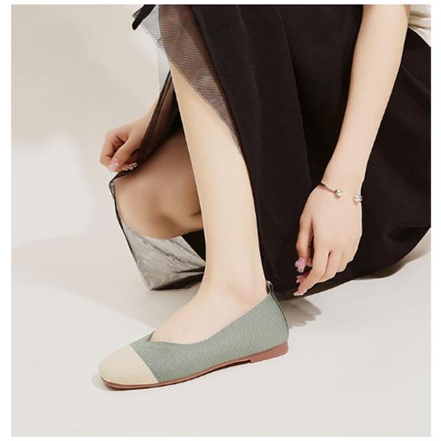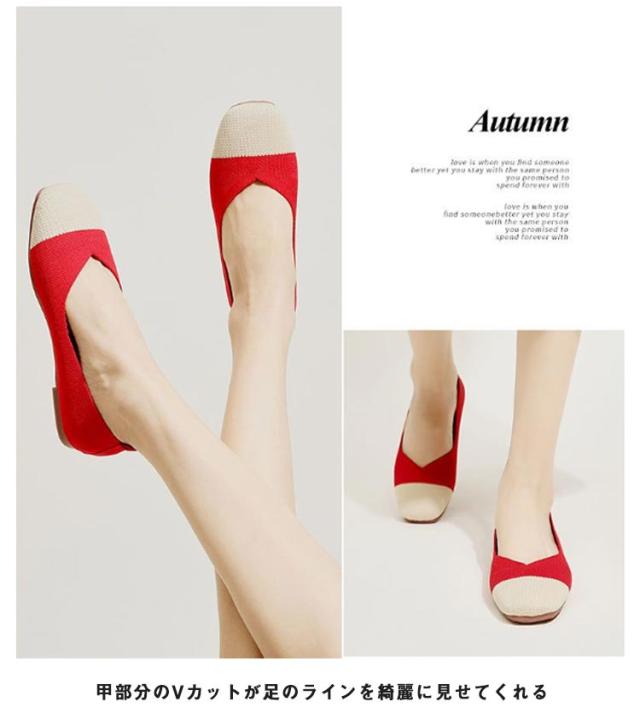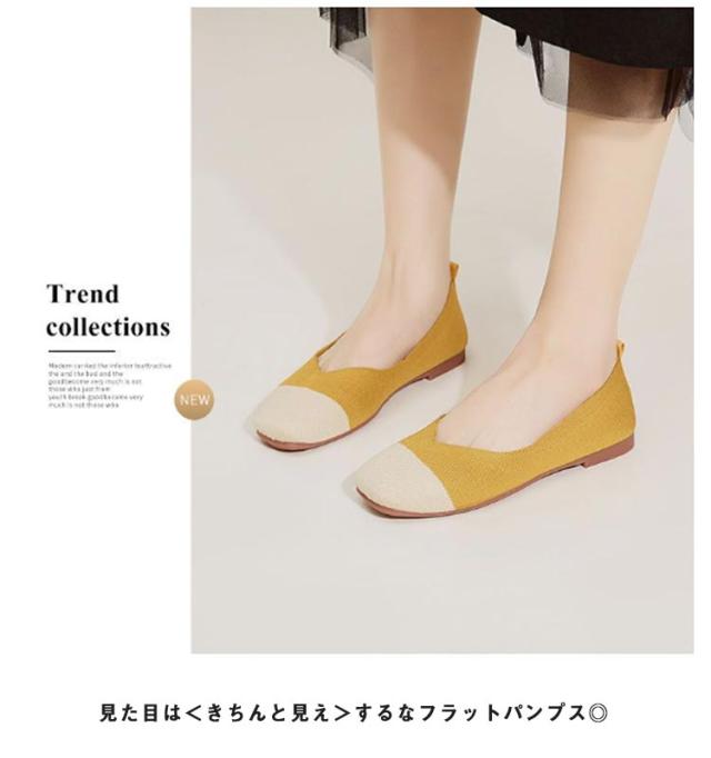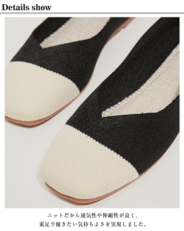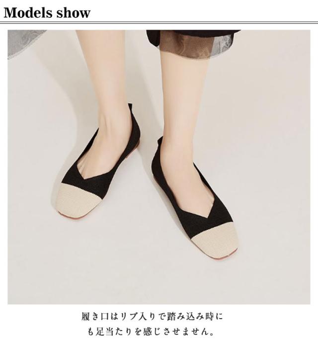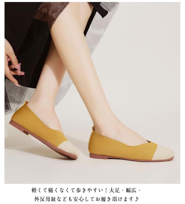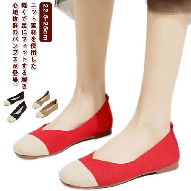 ニットパンプス 靴 スクエアトゥ パンプス 外反母趾 レディース シューズ ぺたんこ フラットパンプス おしゃれ 柔らかい 痛くない 歩きやすい 軽い 通気性 ニットパンプス 幅広 甲高 軽量 脱げない フラットシューズ 走れる 通勤 オフィス