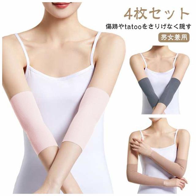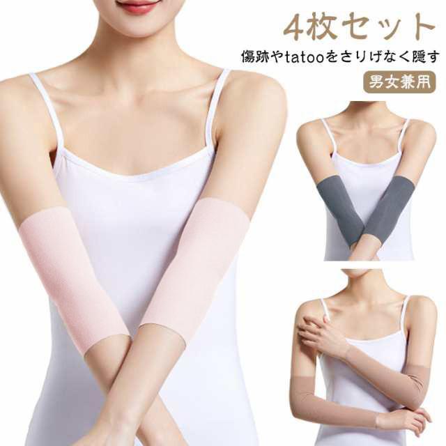 ストレッチ アームカバー タトゥー隠し 肌色 4枚セット 隠すサポーター 通気性 薄手 二の腕サポーター 二の腕カバー tatooかくし 肌色サポーター 黒 傷跡かくし ブラック 手首かくし 目立たない 傷かくし 男女兼用