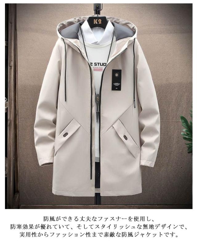 ロングコート トレンチコート フード付き ハンサム ジャケット ブルゾン コート ロング丈 ロングコート メンズ 春秋冬 薄手 厚手 大きいサイズ ジャケット ミリタリージャケット