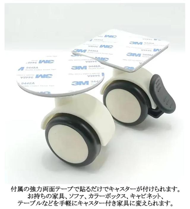貼り付け 4個セット 貼るだけキャスター 貼るだけキャスター キャスター ストッパー付き 収納ボックス 貼り付け 取り付け簡単 粘着テープ式キャスター DIY 車輪 両面テープ 後付け 簡単 台 カラーボックス 収納ケース ワゴン チェスト