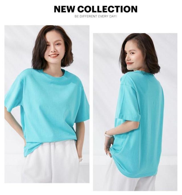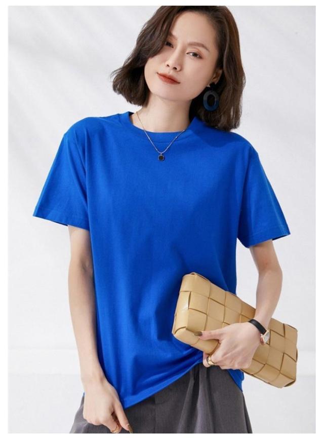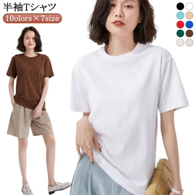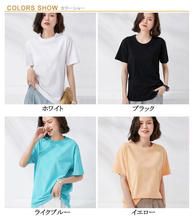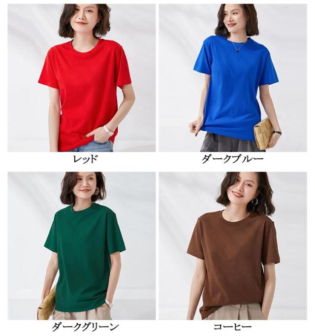 綿 ブルー コットン ティーシャツ クルーネック レディース トップス カラフルTシャツ 半袖 メンズ 普段着 丸首 カジュアル