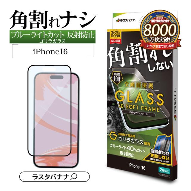 iPhone16 15 ガラスフィルム 全面保護 ブルーライトカット アンチグレア 反射防止 角割れしない ゴリラガラス SGY4300IP461 ラスタバナナ