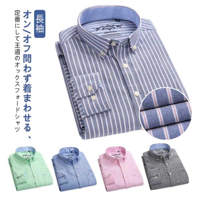 無地 きれいめ シャツ 形態安定 オックスフォードシャツ ボタンダウンシャツ オックスフォードシャツ メンズ ストライプ柄 長袖 カジュアルシャツ 襟付き 通勤 ストレッチ オフィスカジュアル 白シャツ ワイシャツ カラーシャツ 春 秋