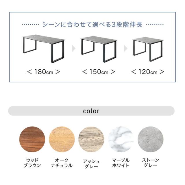 伸長式 ダイニングテーブル 120/150/180 ダイニング テーブル 伸長ダイニングテーブル 伸縮式 伸縮テーブル 伸長テーブル エクステンション 木目 石目 大理石 調 4人用 6人用 4人掛 6人掛