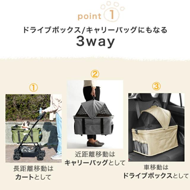 3WAY ペットカート フルオープン ペットキャリー ドライブボックス カート 取り外し可能 分離 分離式 ブレーキ 自立 ペットバギー 収納 お散歩 散歩 散歩用 お出かけ 旅行 通院 おしゃれ