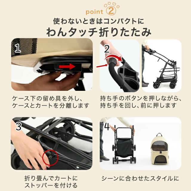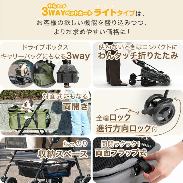 折り畳み わんタッチ 3way ペットカート 耐荷重 15kg レインカバー ドリンクホルダー 付き 取り外し可能 自立可 分離 分離型 対面式 コンパクト 多頭 折りたたみ ワンタッチ 小型犬 中型犬 軽量 軽い ペット キャリー カート