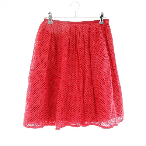 【中古】エストネーション ビス フレアスカート ひざ丈 パンチング 透け感 薄手 コットン 36 ピンク レディース