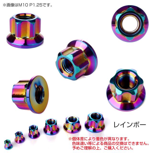 ロング貫通ナット M12 P1.25 フランジ付 六角ナット 切削カスタムヘッド SUS304 ステンレス レインボー 虹色 TF0265