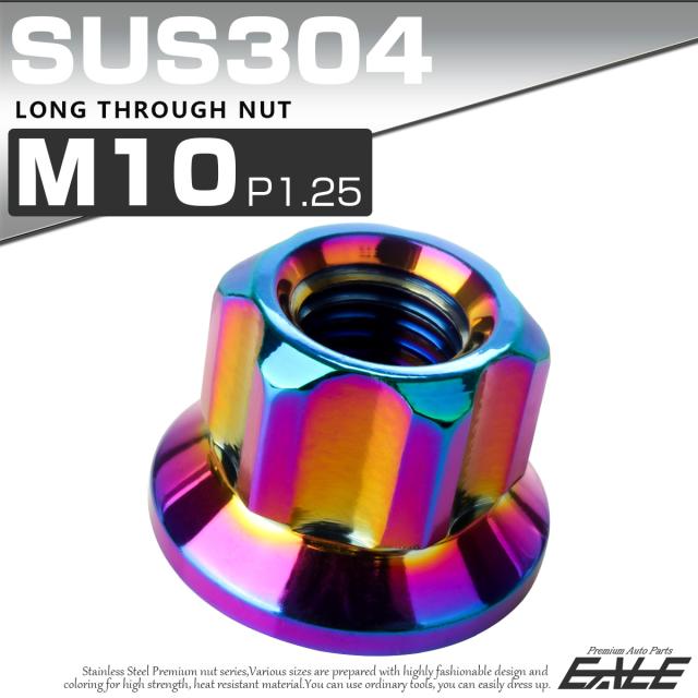 ロング貫通ナット M10 P1.25 フランジ付 六角ナット 切削カスタムヘッド SUS304 ステンレス レインボー 虹色 TF0264