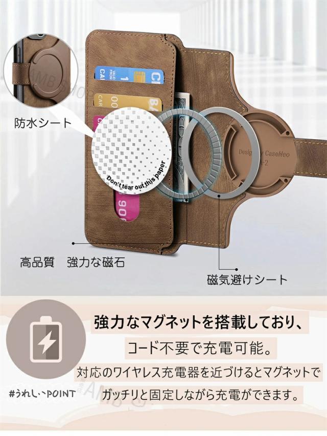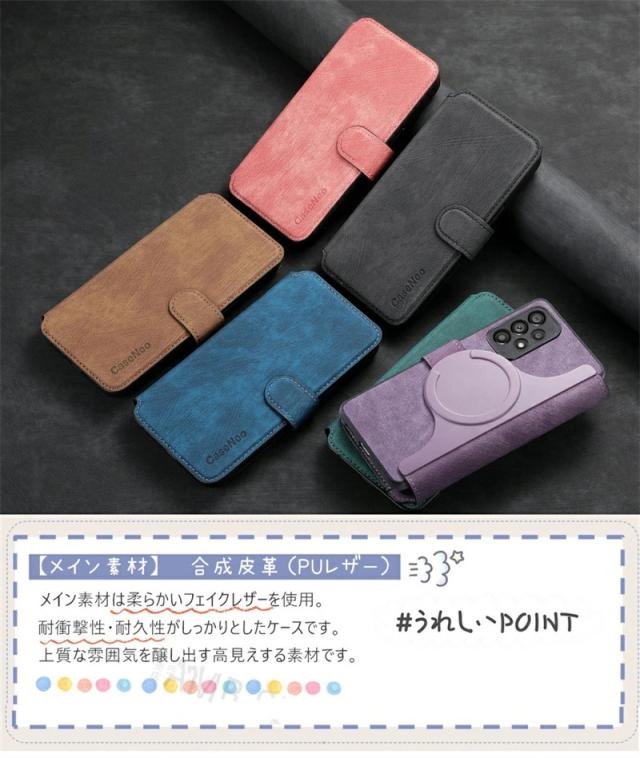● ピタッと装着可能なマグネット搭載の手帳型カバー付き、2in1の大人おしゃれなスマホケース。 ● 単体で使用可能な背面MagSafeケースと脱着可能な手帳型カバーの組み合わせで、便利さが更にアップ! ● お出掛けや買い物にはポイントカード入れて、通勤・通学にはSuicaなどのICカード入れれば便利です。 ● マグネットリングを搭載し、MagSafeアクセサリーに対応でき、より安全、安定、急速なワイヤレス充電体験をもたらします。 ● カードを入れることのできる手帳型カバーがついており、クレジットカードや、IC系カードを入れることができます。 ● 背面カバーは、各種MagSafeアクセサリーに対応した軽量スリム設計で、使い勝手も抜群なのでデイリー使いに最適です◎ ● 背面カバーは、フィット感抜群のスマホ専用TPUケース。ケースをしたままストレスの無い操作が可能。 ● 落下時の衝撃を効果的に吸収してスマホへの直接的な外力を防ぐようになっています。