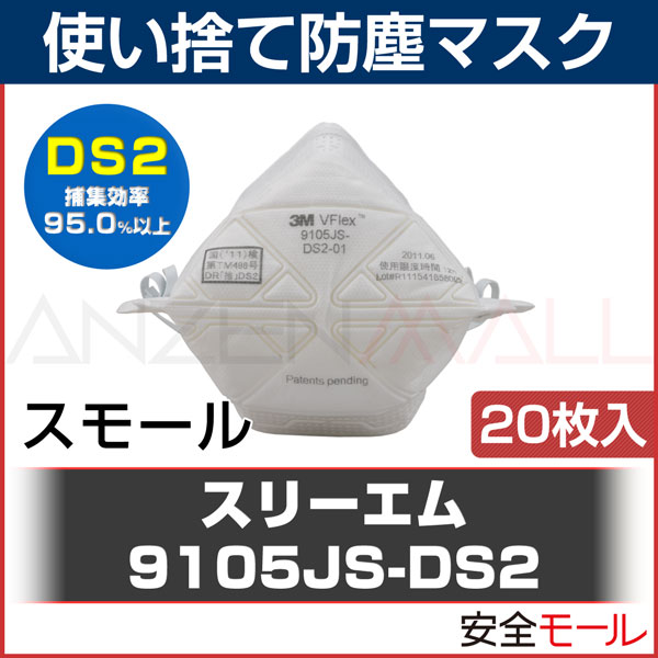 3M DS2 使い捨て 防塵マスク 日本 国家検定合格 Vフレックス 9105JSDS2 スモール サイズ 20枚