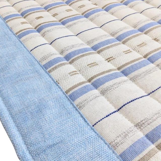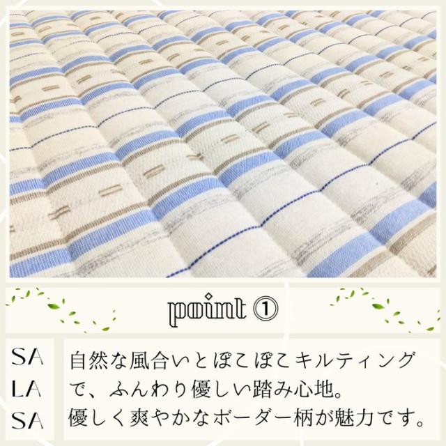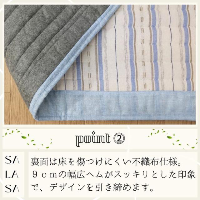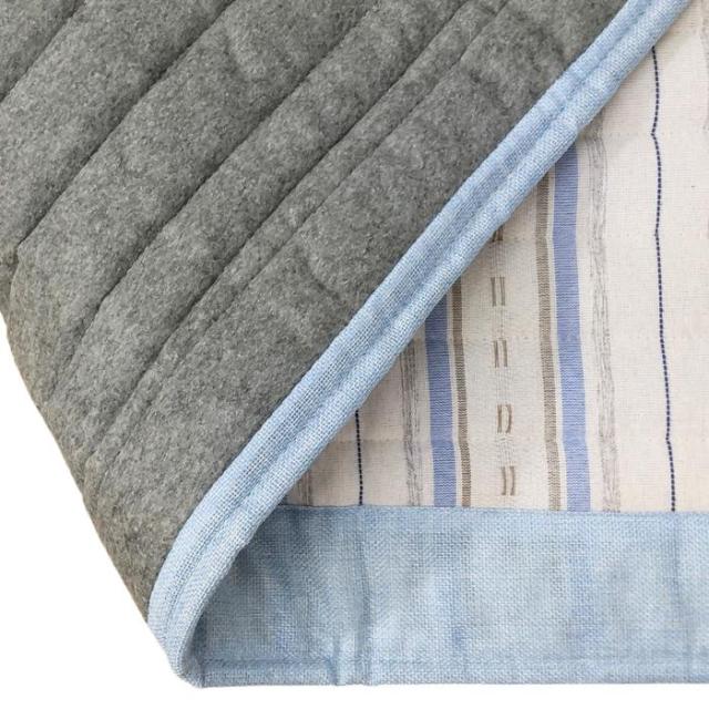 ご家庭で洗えるインド綿風キルトラグ サラサ ブルー色 180x240cm 3畳用 さらさらボーダー柄 ふっくらキルティングラグ