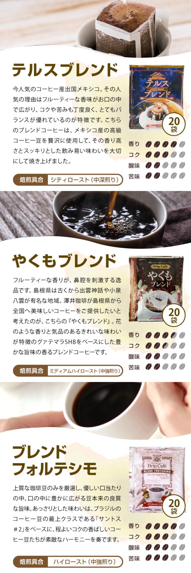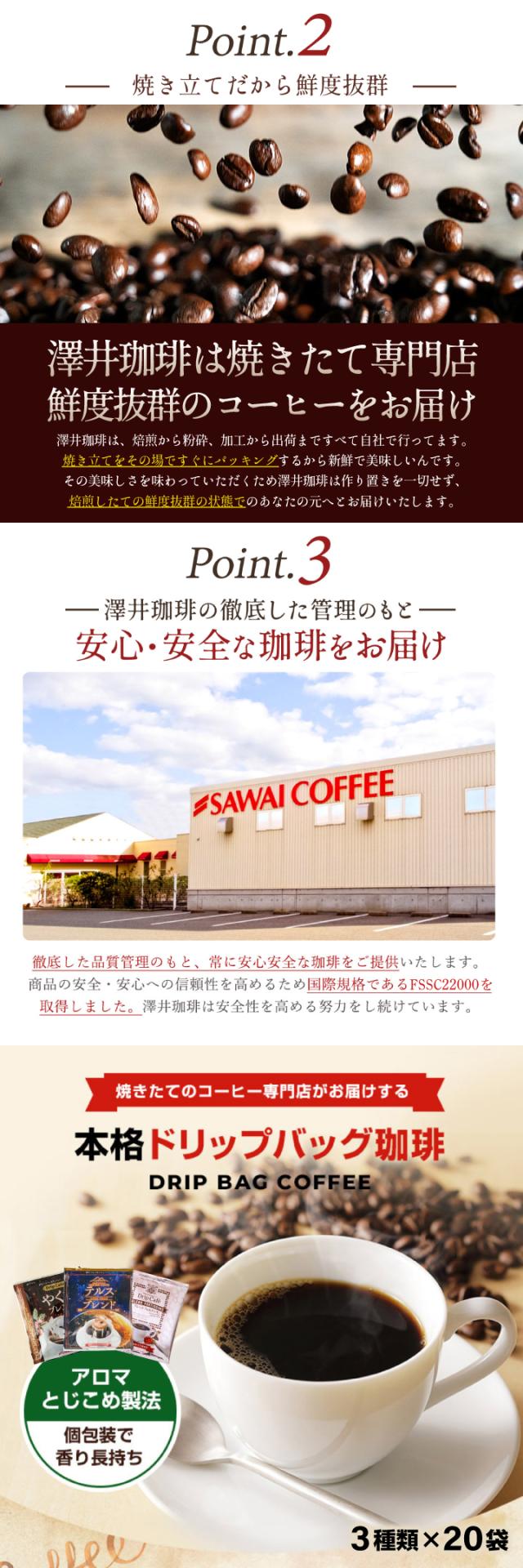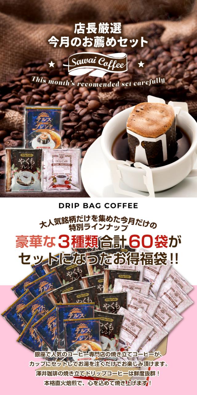 4月のおすすめドリップバッグ福袋 60杯分 鮮度抜群 ドリップコーヒー 珈琲 ドリップパック 送料無料 コーヒー ドリップバッグ 福袋 20袋×3種 個包装 飲み比べ セット 澤井珈琲