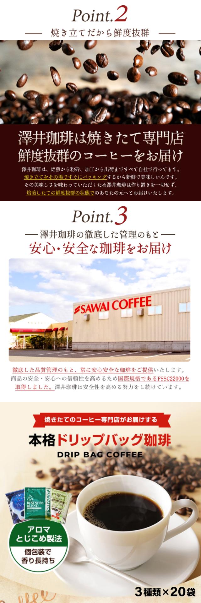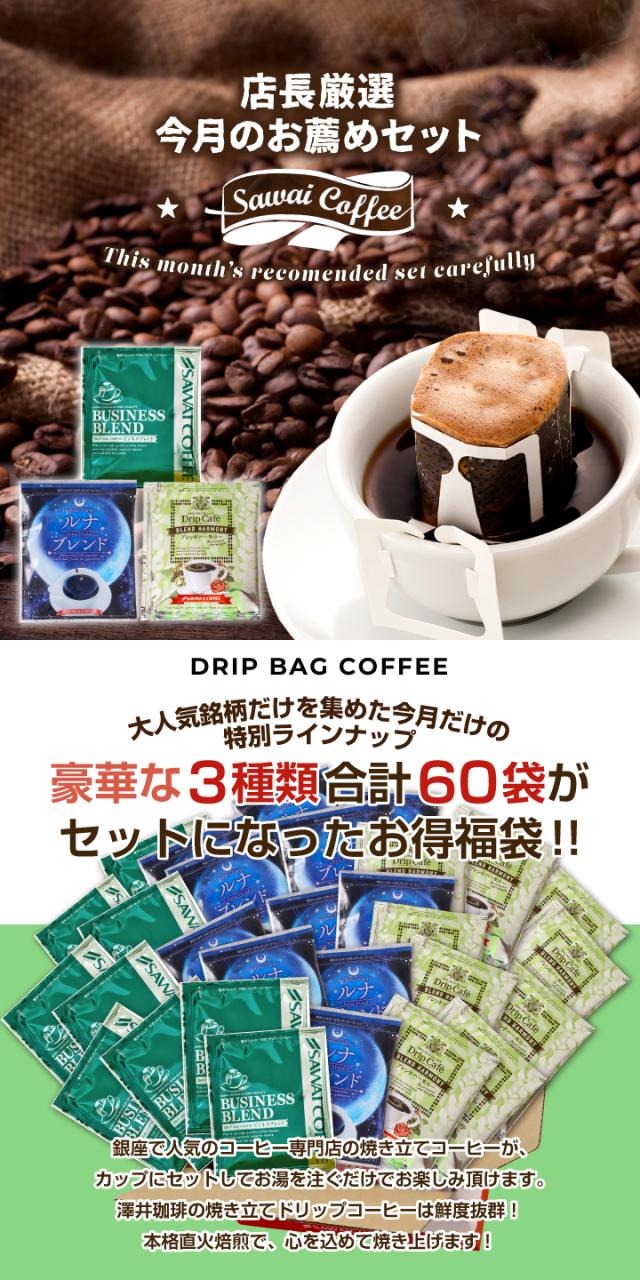 3月のおすすめドリップバッグ福袋 60杯分 鮮度抜群 ドリップコーヒー 珈琲 ドリップパック 送料無料 コーヒー ドリップバッグ 福袋 20袋×3種 個包装 飲み比べ セット 澤井珈琲