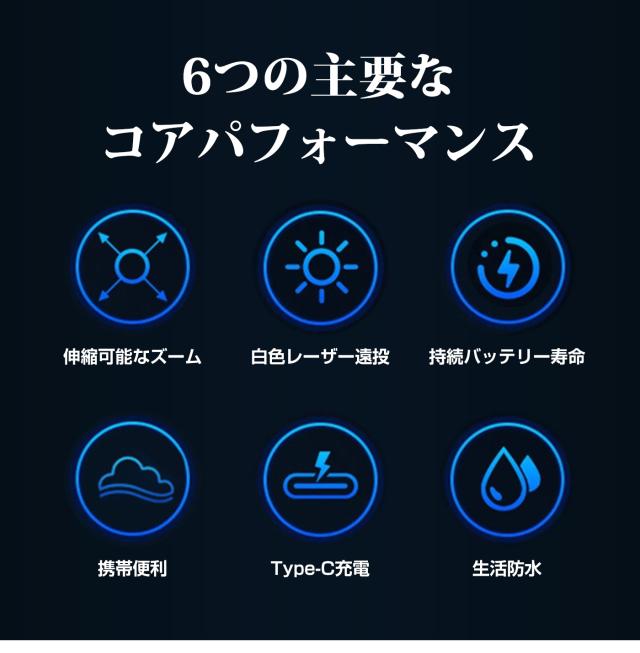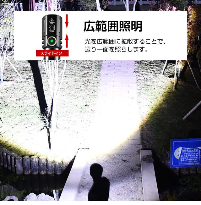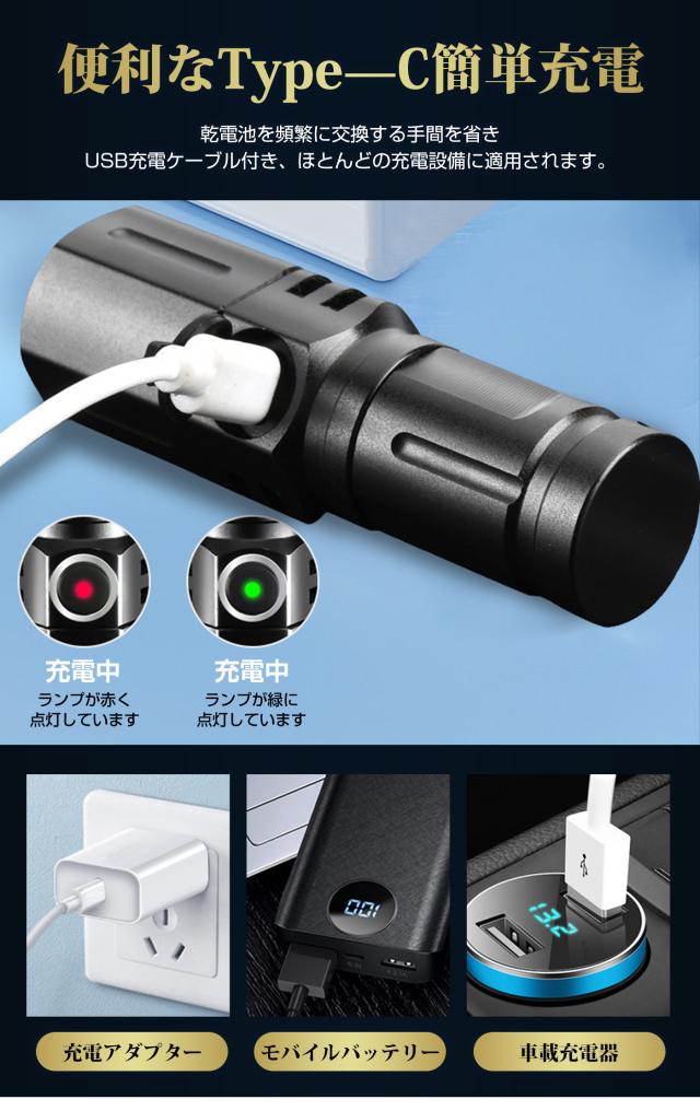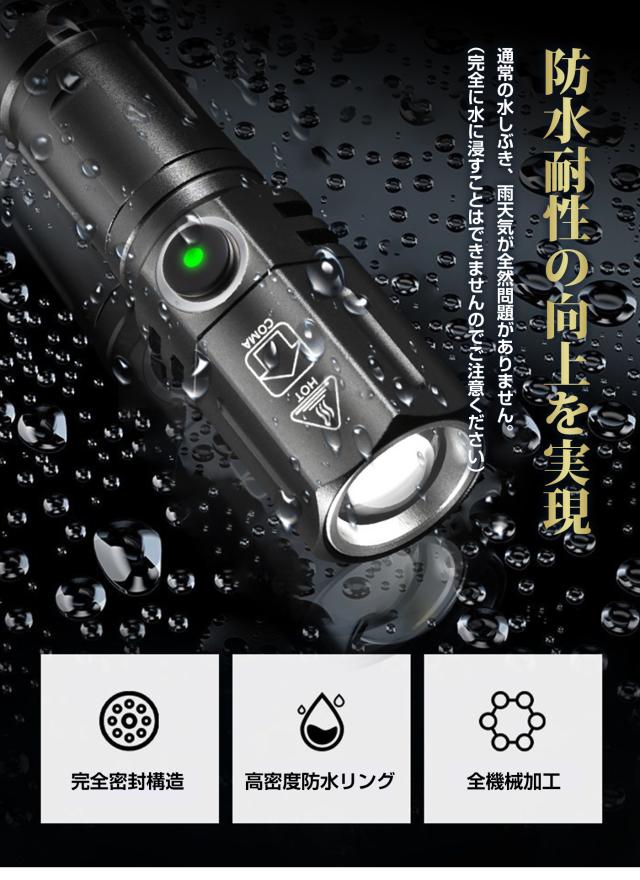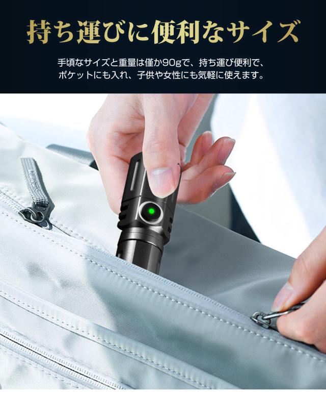 パワフルな充電ができるミニLED懐中電灯です。 TIR光学レンズを搭載し、柔らかくバランスを生かした光束です。3モード、2000ルーメン(最大)出力は極めて明るい、最大217mの光束を生み、ズーム機能1500mAhの大きいバッテリー容量とUSB Type-C充電が可能。