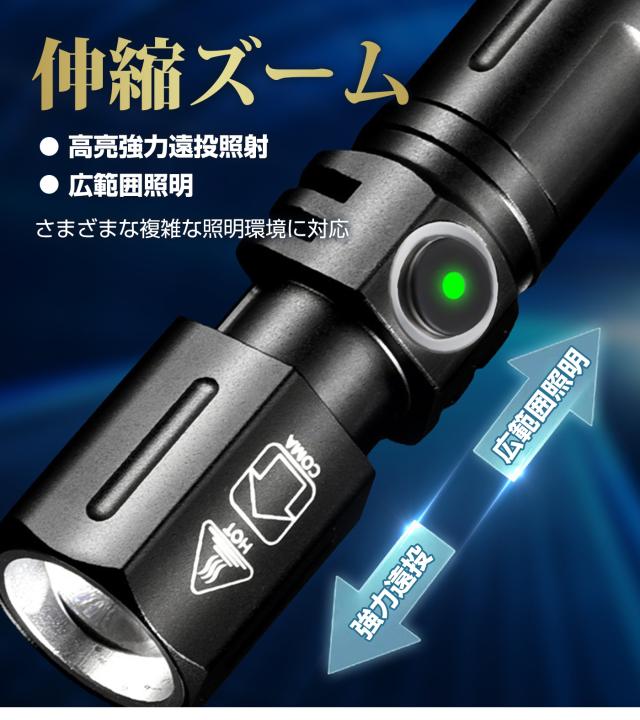 懐中電灯 懐中電灯小型 led 懐中電灯充電式 3種点灯モード ズーム機能 USB 充電式懐中電灯 2000ルーメン高輝度 電池残量 IP68防水機能 停電 防災 キャンプ アウトドア 夜釣り