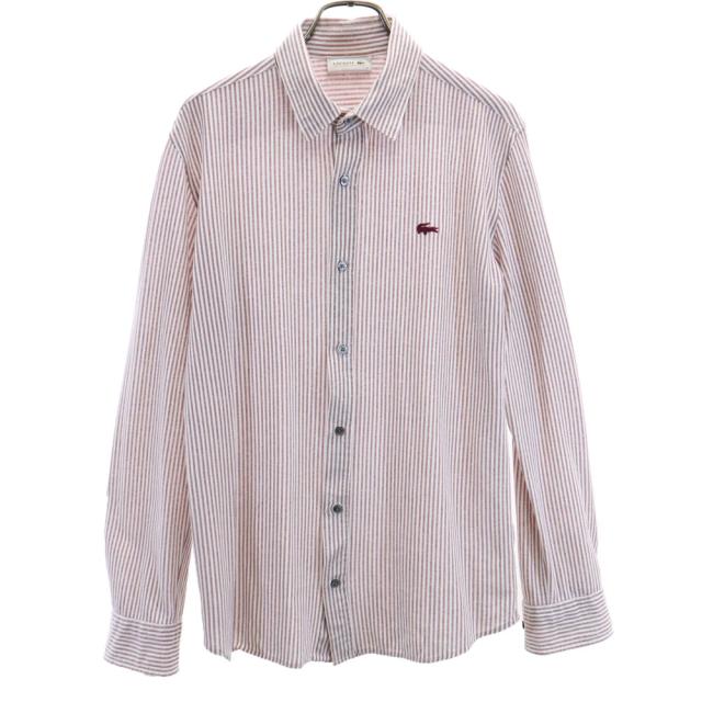 LACOSTE ラコステ 日本製 ストライプ 長袖 シャツ 3 ホワイト系 鹿の子 メンズ