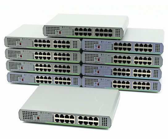 【10台セット】AliedTelesis AT-GS910/16 16ポート1000BASE-T搭載L2スイッチ 底面マグネット足装着 ファンレス 50℃環境対応 中古
