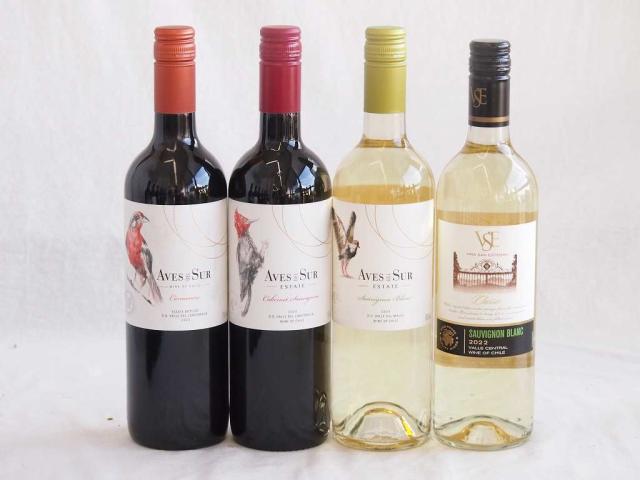 人々に愛されチリ赤白ワイン 4本セット(クラシックソーヴィニヨン・ブラン白 デル スール ソーヴィニヨン・ブラン白 デル スール カベルネ ソーヴィニヨン赤 デル・スール カルメネール赤) 750ml×4本