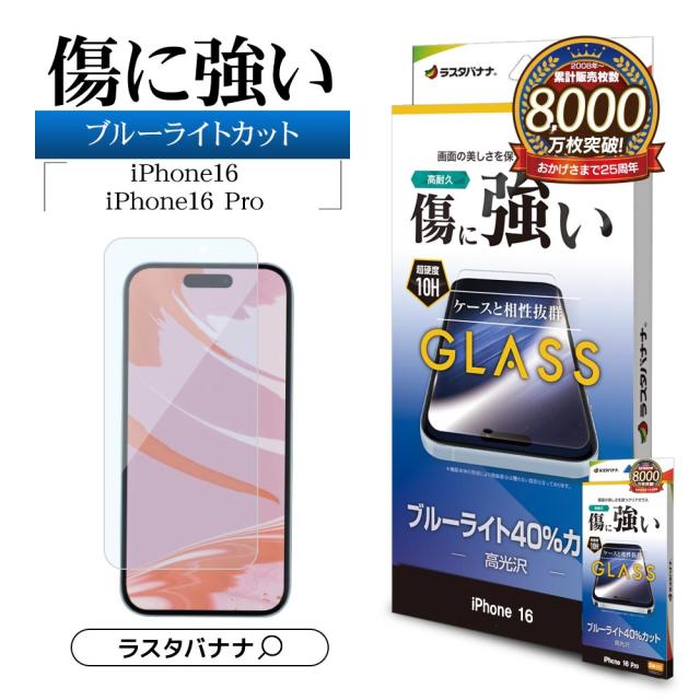iPhone16 16 Pro iPhone15 ガラスフィルム 平面保護 ブルーライトカット 高光沢 透明 クリア 傷に強い 0.33mm 硬度10H ラスタバナナ