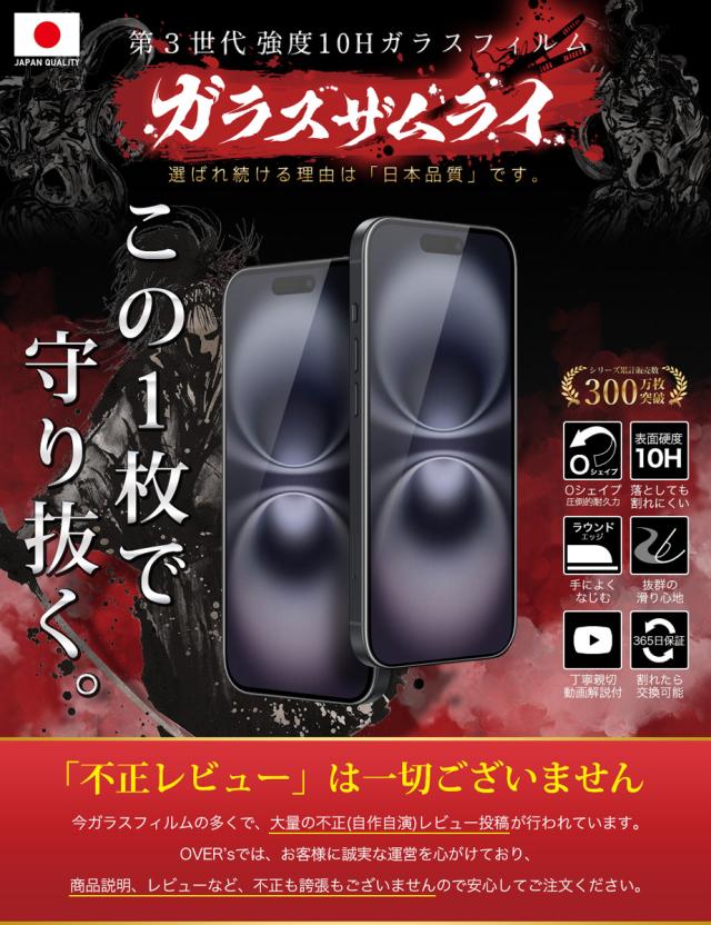 iPhone16 ガラスフィルム 保護フィルム フィルム 10H ガラスザムライ アイフォン iPhone 16 液晶保護フィルム OVER`s オーバーズ TP01