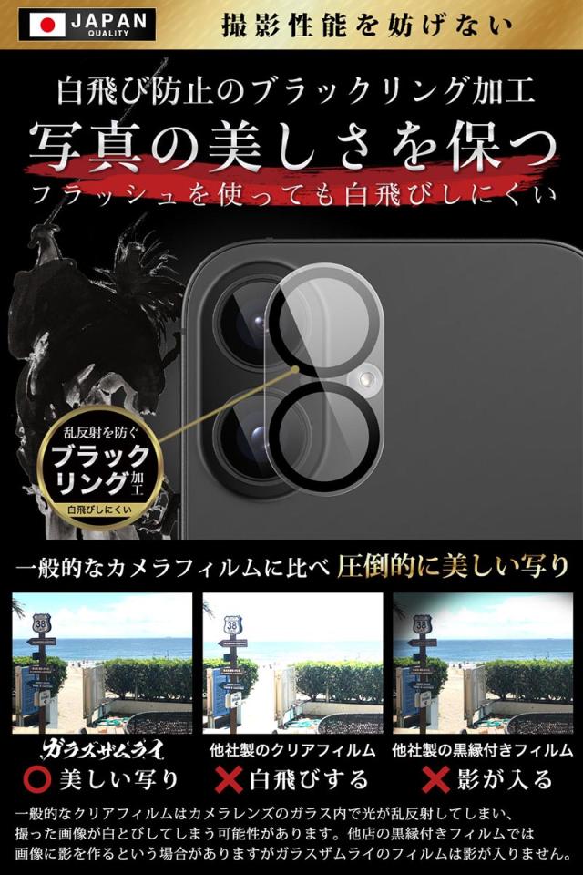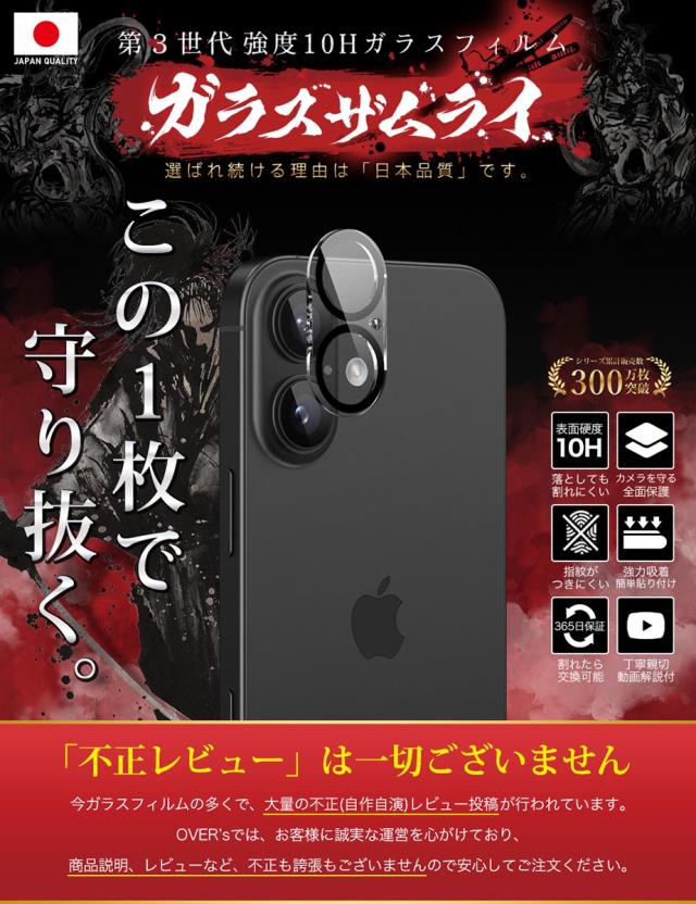 iPhone16 カメラフィルム カメラカバー ガラスフィルム 全面保護 10H ガラスザムライ カメラ保護 アイフォン iPhone 16 カメラレンズ 保護フィルム OVER`s オーバーズ iPhone16 TP01