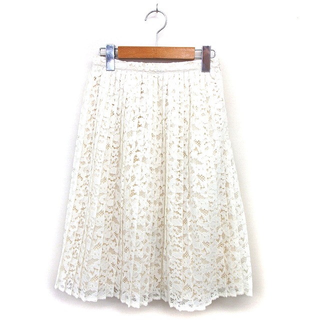 【中古】マーキュリーデュオ MERCURYDUO プリーツ スカート フレア ひざ下 レース サイドジップ S オフホワイト /NT8