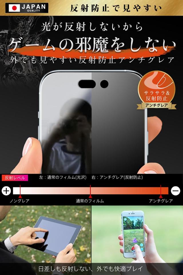 「パズドラで高得点ゲット。」思い通りに 指をすいすい動かせるアンチグレアフィルムを貼って高得点をゲット。【 ギラギラ感を抑える 低反射 】人影、蛍光灯や太陽光の反射など「ギラギラ感」をなくす低反射。反射低減フィルムのアンチグレアはあなたのゲームの時間を邪魔しません。