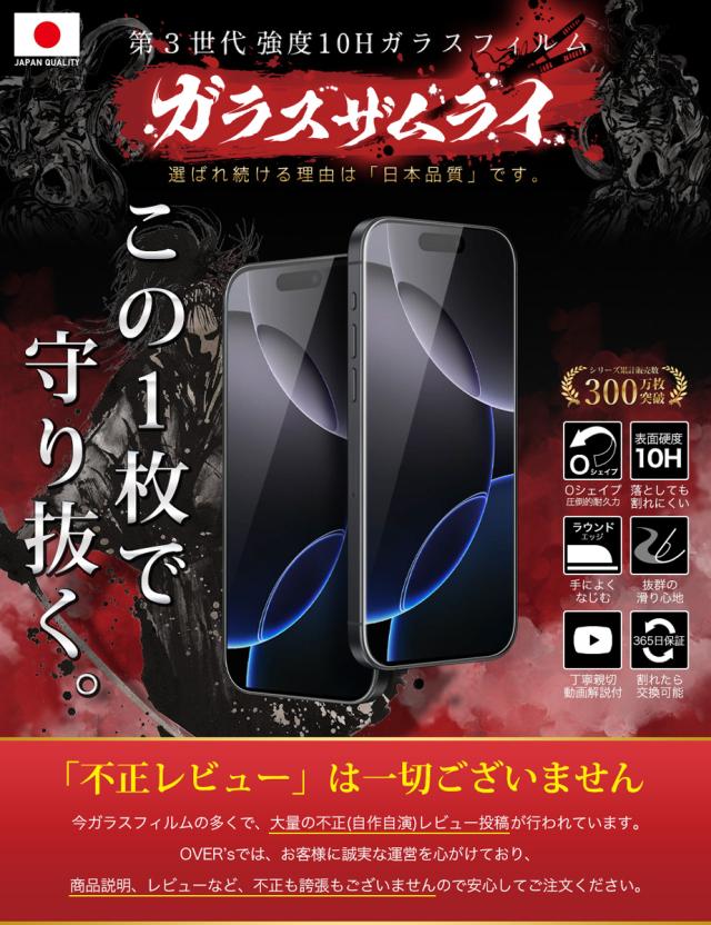 iPhone16 Pro ガラスフィルム 保護フィルム フィルム 10H ガラスザムライ アイフォン iPhone 16 Pro 液晶保護フィルム OVER`s オーバーズ iPhone16Pro TP01