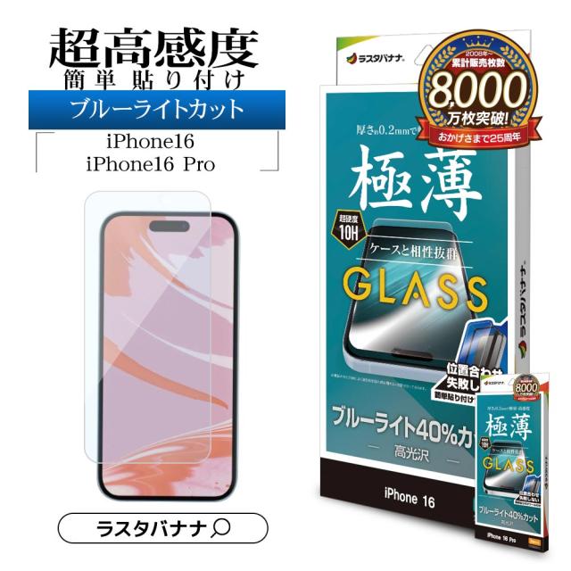 【送料無料】iPhone16 16 Pro iPhone15 ガラスフィルム 平面保護 ブルーライトカット 高光沢 高感度 0.2mm 硬度10H 簡単貼り付け アイフォン ラスタバナナ GST4319IP461 GST4395IP461P