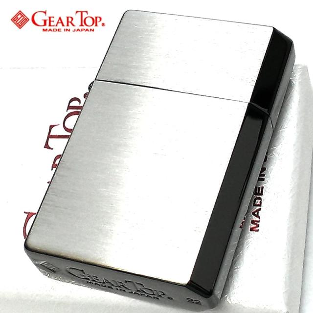 オイルライター ギアトップかっこいい シンプルライン シルバーサテン サイドブラック 日本製 GEAR TOP 重厚 おしゃれ 国産品