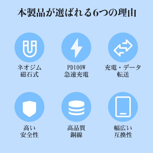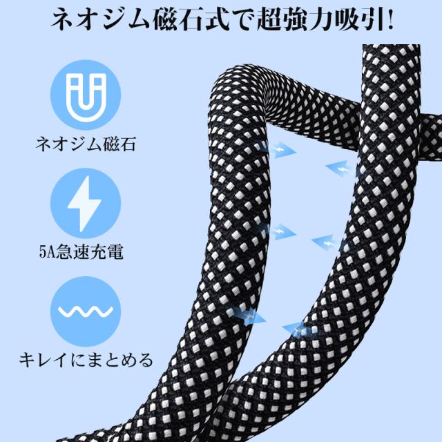 【100W急速充電×マグネット自動収納】次世代 USBケーブル iPhone 充電ケーブル 100W(5A)PD対応 急速充電 マグネット充電ケーブル 480Mbpsデータ転送 磁気自動収納 1miPad/MacBook/Xperia/Galaxyなど全機種対応