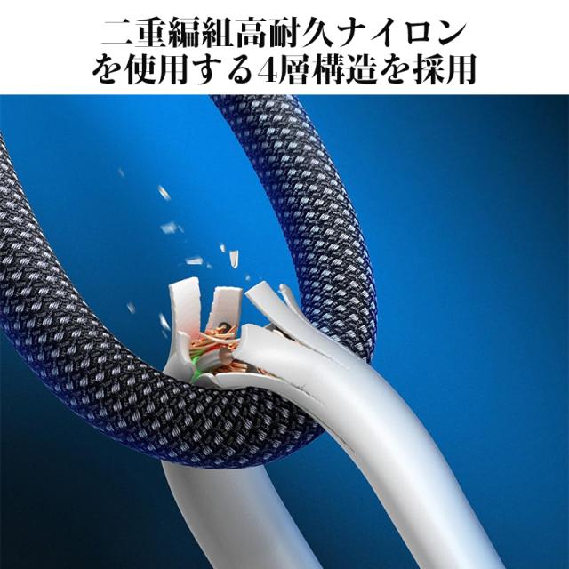 USB-Cマグネット充電ケーブルは、両端の端子部分に超高硬度で強力な耐摩耗性を持つ亜合金を採用しており、繰り返しの差し込みや抜き出しにも耐えられるほど強力です。耐摩耗、高密度、高耐久48番手の二重ナイロン編組の4層構造で耐久力を強化している。