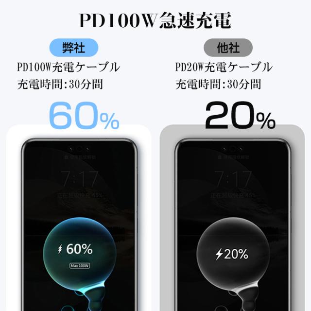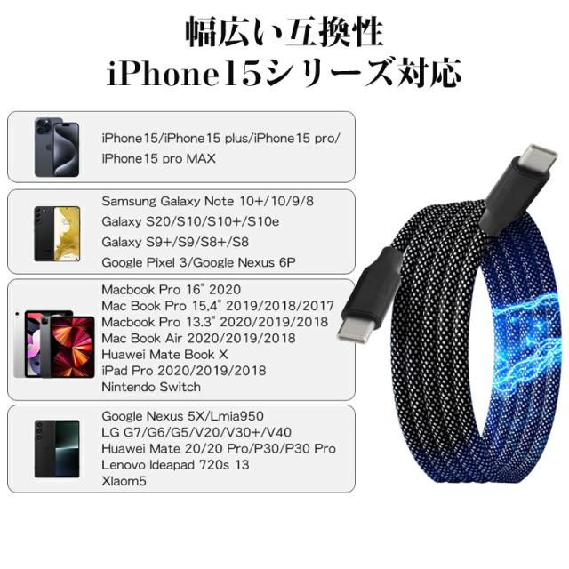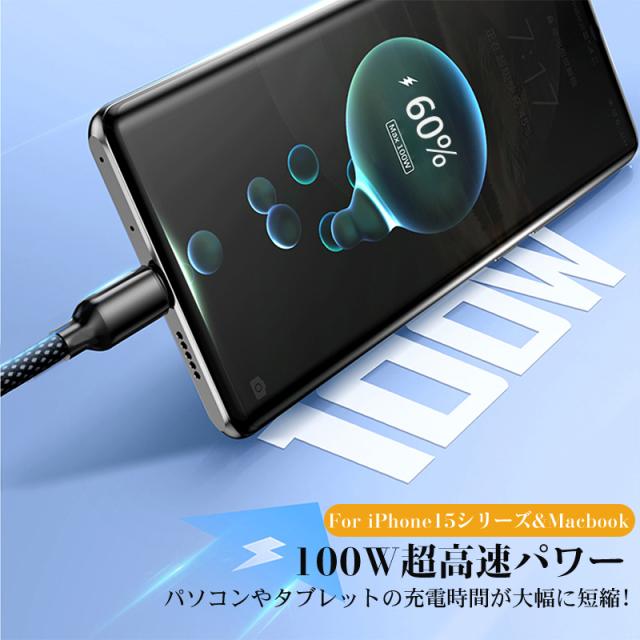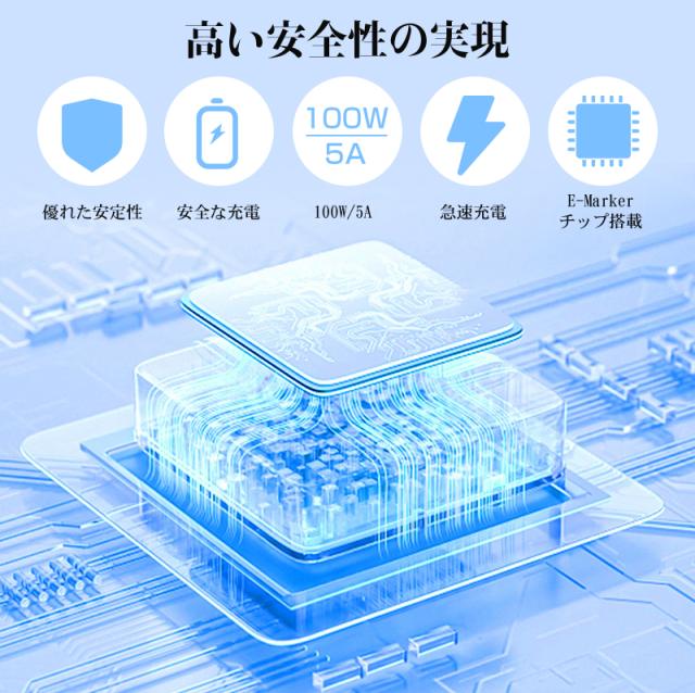 最大100W急速充電対応 最新の技術を採用したこの充電ケーブルは、最大100Wの出力に対応しています。対応するスマートフォンやタブレット、ノートパソコン等を驚くほど速く充電可能。短時間での急速充電が求められる現代人のニーズに応えます。