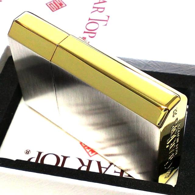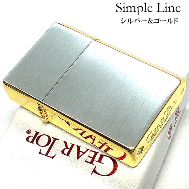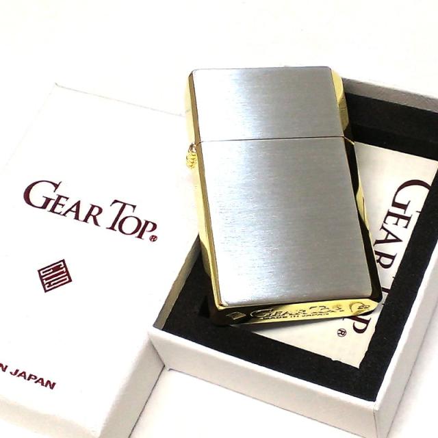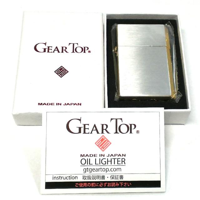 オイルライター 日本製 ギアトップ シンプルライン サイドゴールド かっこいい シルバーサテン GEAR TOP 重厚 おしゃれ 国産品
