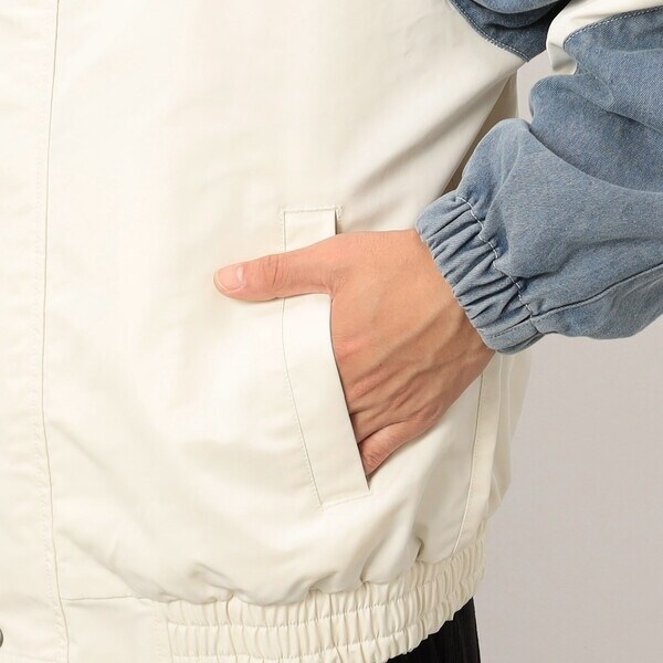 ポリエステル素材とデニムで切り替えたスポーツテイストのブルゾンです。