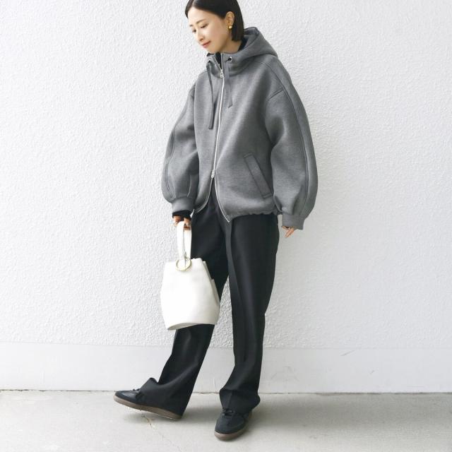 大人カジュアルに決まるフーディーブルゾン