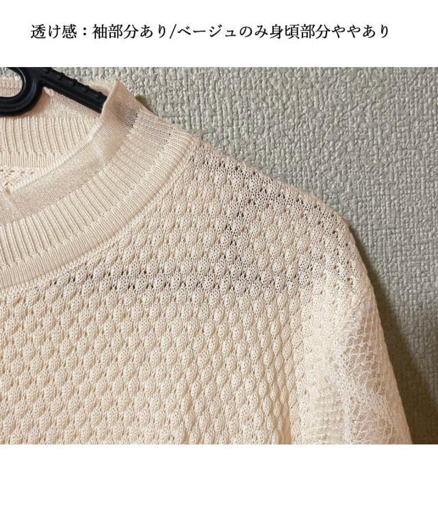 シースルー袖ニット 異素材ニットトップス