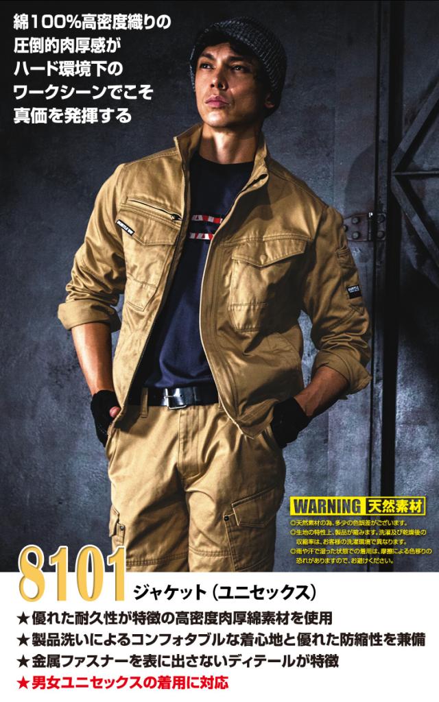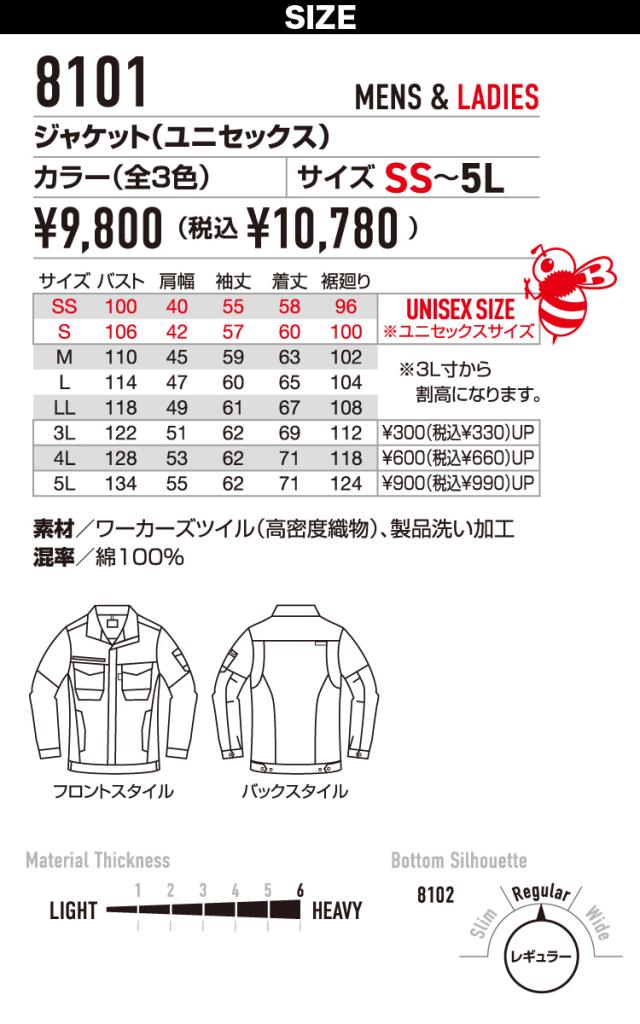 バートル BURTLE ジャケット 8101 作業着 ジャンパー 綿100% 防縮 縮みにくい 通年 秋冬 ヤッケ 上着 おしゃれ かっこいい 人気 企業 法人 作業 工場 外作業 ワークユニフォーム 土木 工事 現場 SS~4L メンズ ユニセックス BURTLE 作業服 作業着