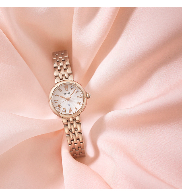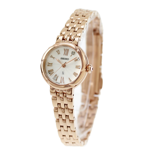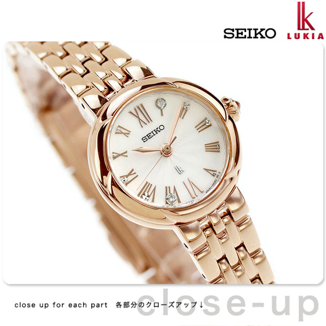正規品 7年保証キャンペーン 送料無料 セイコー ルキア Grow ラボグロウンダイヤモンド 日本製 レディース 腕時計 SSWA008 SEIKO LUKIA アナログ ホワイト ピンクゴールド 白 ◆LUKIA Growから、ふっくらとした花びらが魅力の芍薬をモチーフに花びらの重なりをイメージしたベゼルデザインと、ダイヤモンドをダイヤルにあしらったジュエリーのような魅力を持つLuxe(リュクス)な時計が新たに登場。LUKIA初登場の"Silky Pink"カラーを採用。柔らかでさりげないシルクの様な色味は腕元に馴染みながら美しく光り、どんな服装にもマッチする華やかな万能カラーです。金属ならではの質感あるダイヤルベースには、花びらの艶やかなイメージを表現する為にギョーシェ模様を施し、さらに丁寧に美しく磨き上げることで表現しています。小ぶりのサイズ感は、時計としての視認性も確保しつつ、華奢で女性らしさを演出してくれます。 発売日:2024年10月発売