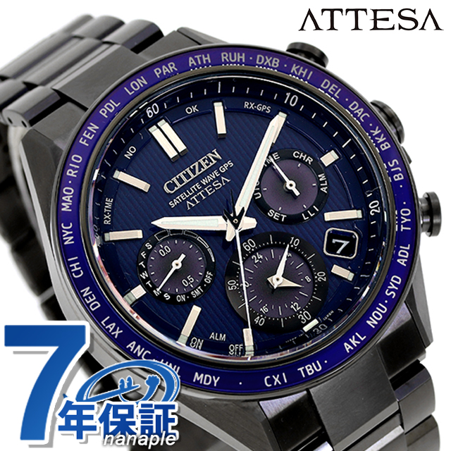 正規品 7年保証キャンペーン 送料無料 シチズン アテッサ ダブルダイレクトフライト アクトライン ブラックチタニウムシリーズ チタン クロノグラフ ソーラー 日本製 光発電エコドライブ 光発電エコ・ドライブ メンズ 腕時計 CC4059-64L CITIZEN ATTESA ACT Line Black Titanium Series アナログ ネイビー ブラック 黒 ◆チタニウムで次世代を進み続ける、シチズン ATTESA(アテッサ)。フラッグシップモデル「CC4055-65E」のバリエーションモデルとして、ブラックの外装にブルーの文字板を合わせた新バージョンが登場。圧倒的な存在感を放つフラッグシップモデルのデザイン、機能を踏襲しつつ、サファイアベゼルと文字板のカラーに宇宙を思わせる青紫を採用しています。青紫のサファイアベゼルに表記された都市名は、光を反射してキラキラ輝く蒸着シルバー仕様です。文字板はインクジェット印刷を重ね、美しいツヤのあるストライプを表現。視認性に優れたシルバーの針とインデックスが、ダークなトーンの中で輝きを放ちます。 発売日:2024年10月発売