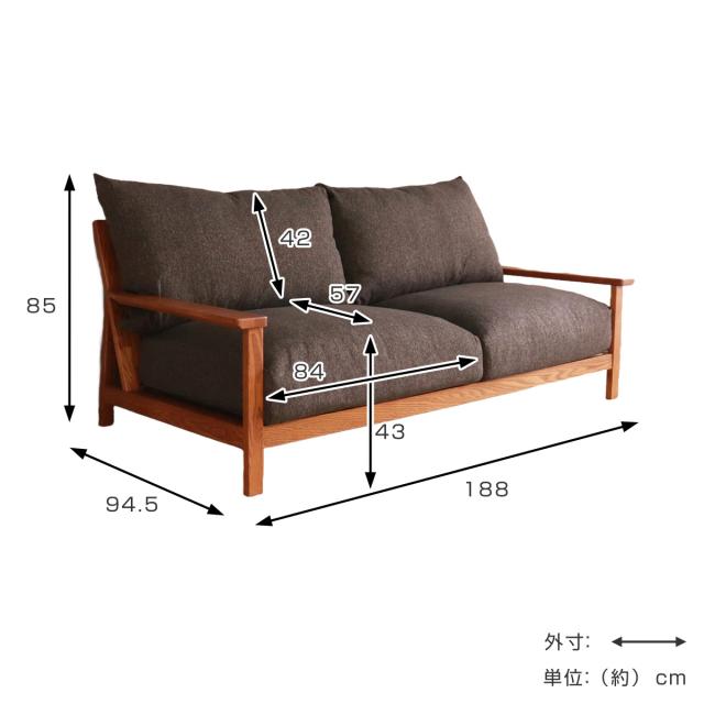 | サイズ | 約 幅188×奥行94.5×高さ85(cm) 座面高:約 43(cm) |