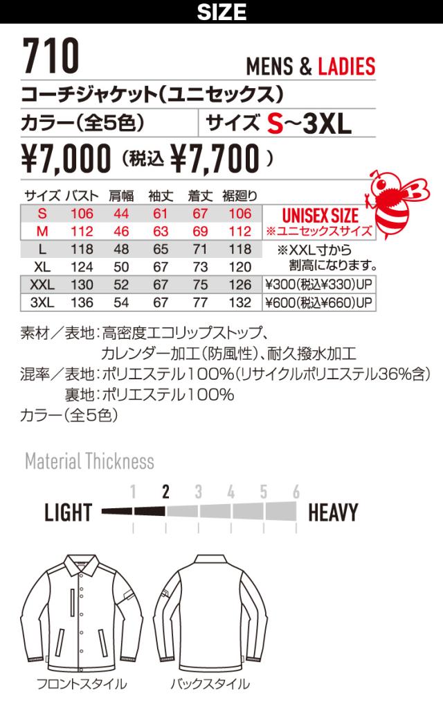 バートル BURTLE 710 コーチジャケット 防寒着 防風 耐久 撥水 保温 SDGs エコ メッシュ 蒸れない 暖かい 人気 おしゃれ 秋冬 防寒ジャンパー ブルゾン ドカジャン ダウン 上着 アウター ワーク マン メンズ レディース