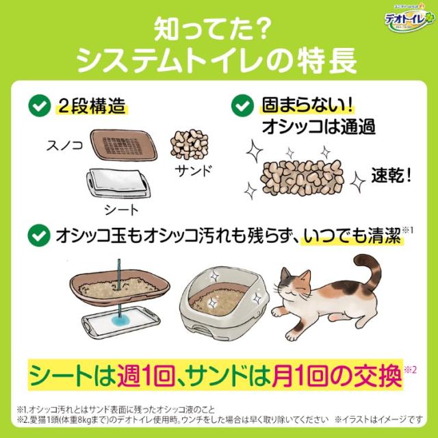 ●シートは週1回、サンドは月1回交換でお手入れ簡単!(※愛猫1頭(体重8kgまで)使用時。ウンチをした場合は早く取り除いてください)