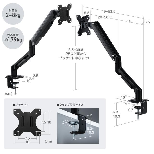 0 100-LAC0060■製品サイズ:約W10×D9〜53.5×H8.5〜39.8cm(※高さは、デスク面からブラケット中心まで)