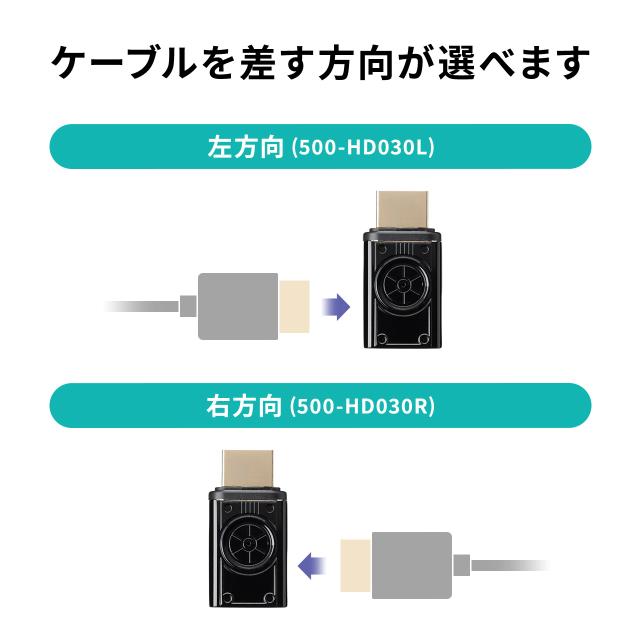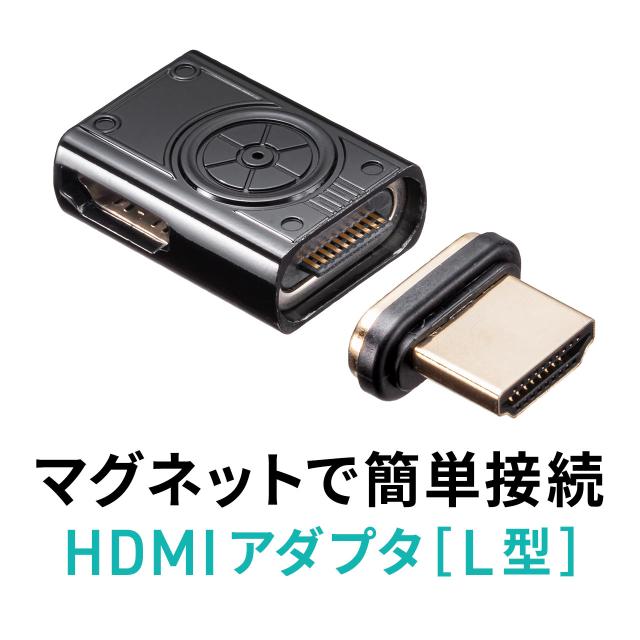 HDMIアダプタ マグネット L型 左向き 右向き 横 L字 8K/60Hz 4K/120Hz 配線簡単 ドライバ不要 通電LED テレビ プロジェクター ゲーム 変換アダプタ コネクタ ブラック[500-HD030]